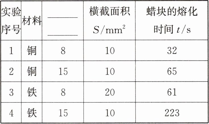 答案:11. (1) 两蜡块质量不相等 (2) ①长度 $L/cm$ ② 2、4 铜片 (3) 可确保相同时间内铜片和铁片吸热相同 (4) 差