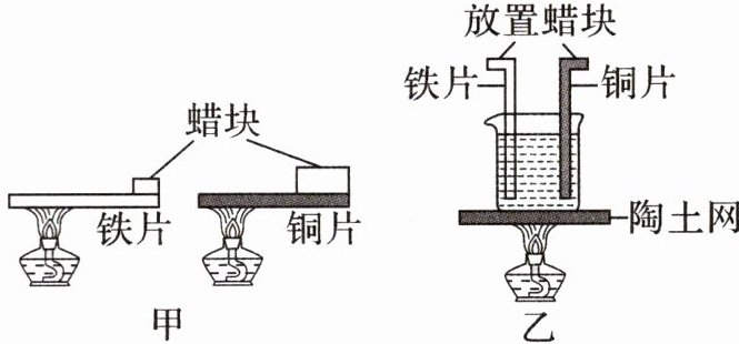 科学探究 为了探究金属铜和铁的导热性能,小明设计图甲实验(支架未画出).