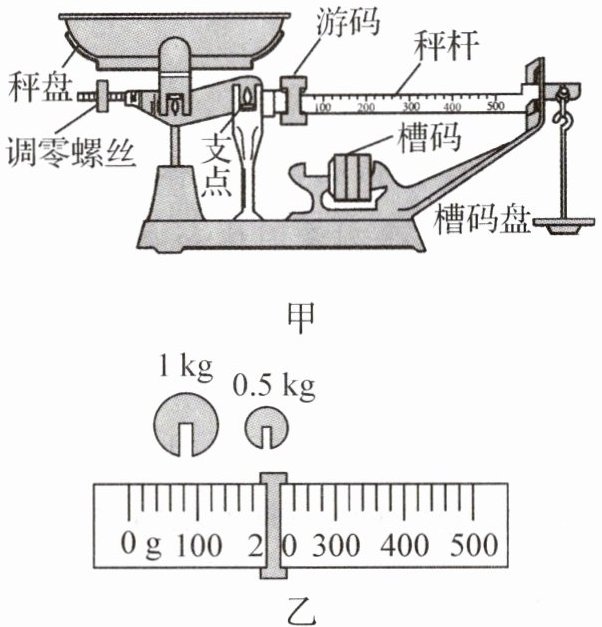 10. 如图甲所示为商店里使用的案秤,其工作原理与实验室中的基本实验仪器