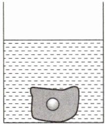 2. 如图所示,冰块中有一小石块,冰和石块的总质量是 $ 116\ \mathrm{g} $,将冰块放入底面积为 $ 100\ \mathrm{cm}^{2} $ 盛有水的圆柱形容器中,冰块完全沉入水中,这时容器中的水面上升了 $ 1.1\ \mathrm{cm} $,当冰全部熔化后,容器里的水面又下降了 $ 0.1\ \mathrm{cm} $,则冰块中所含石块的质量是