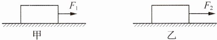 3. 如图所示,完全相同的两个物体在相同的水平地面上运动,所受拉力分别为$F_{1}$和$F_{2}$,且$F_{1}<F_{2}$。那么,不计空气阻力时,两物体受到的摩擦力大小关系为(