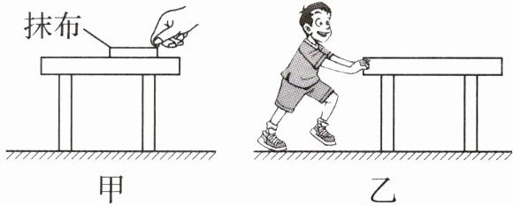 11. (2025·四川泸州)小复周末参加家庭劳动。如图甲所示,他用抹布向左擦拭桌面时,抹布受到桌面的摩擦力方向向