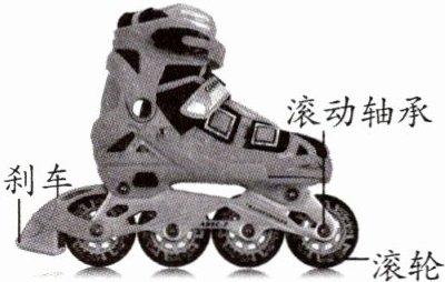 溜旱冰运动既可以锻炼身体又可以帮助我们理解其中的许多物理知识。进行这项运动需要有双旱冰鞋。在路面上穿普通鞋行走时,鞋底与路面的摩擦是滑动摩擦,人与地面的摩擦较大。旱冰鞋下安装了滚动轴承,轴承上套上了可滚动的轮子,人穿旱冰鞋后将人与地面的滑动摩擦通过旱冰鞋变为滚动摩擦,这样使人与地面的摩擦大大减小,如图所示。