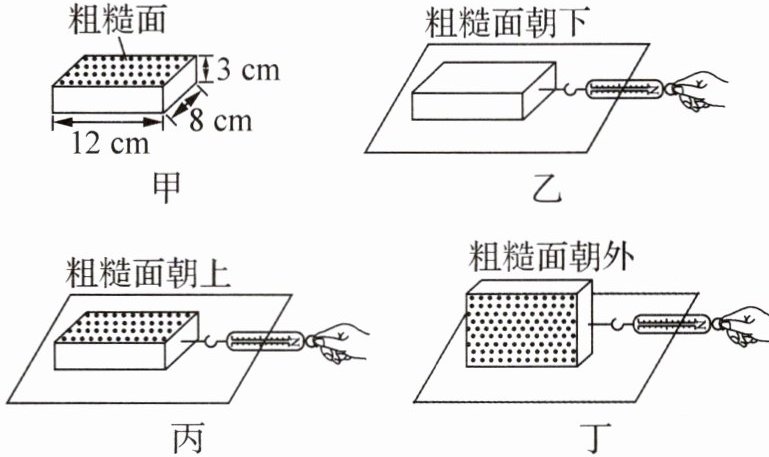 (3)研究滑动摩擦力大小与接触面积是否有关,要控制压力大小和接触面粗糙程度相同,小梅对比乙、丁两次实验,初步得出“滑动摩擦力大小与接触面积有关”这个结论的探究过程是不合理的,理由是没有控制接触面粗糙程度相同.