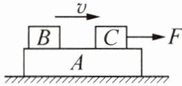 2. (2025·湖北黄石期中)如图所示,物体$A$、$B$、$C$叠放在水平桌面上,水平力$F$作用于物体$C$上,使$A$、$B$、$C$以共同的速度向右匀速运动,则物体$A$的受力个数为(