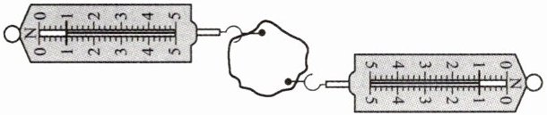 7. 如图,小明正在探究二力平衡的条件,手放开硬纸板前,应使两测力计示数