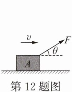 12. 如图所示,水平地面上的物体A在斜向上的拉力F的作用下,向右做匀速直线运动,则物体A