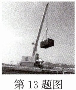 13. 如图所示,起重机吊起重$1× 10^{4}\ \mathrm{N}$的货物,以0.8m/s的速度匀速上升时,钢丝绳对货物的拉力为