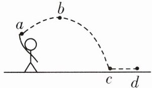 6. 在体育测试中,小明同学掷实心球的场景如图所示,图中a点是球刚离开手的位置. 球从a点上升到最高点b后下落到地面c点,然后滚动到d点停止,下列说法正确的是(