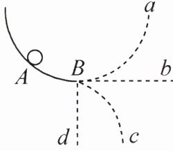 5. 如图所示,小球从A点沿光滑圆弧轨道由静止释放,运动到B点时,若一切外力全部消失,则小球的运动轨迹是(