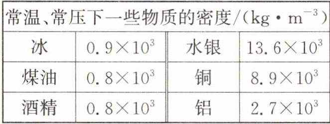 A. 煤油和酒精密度均为 $0.8 × 10^3 \, \mathrm{kg/m}^3$,不同物质密度可能相同,A错误。