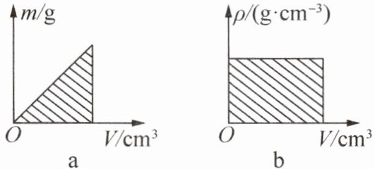 B. 密度是物质的特性,不随质量和体积改变,图a中质量与体积成正比,密度不变,错误。