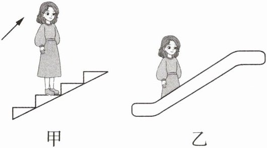 1. (2025·福建福州模拟)如图所示,甲图为人在台阶式自动扶梯上匀速上楼的情景,乙图为人在斜面式自动扶梯上匀速上楼的情景.以下判断正确的是 (