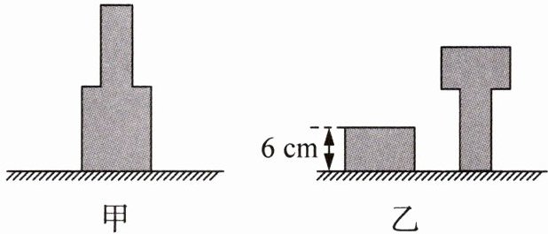 12. (2025·河北沧州一模)某零件由粗、细两段材料相同、高度均为 $ 12 \, \mathrm{cm} $ 的实心圆柱体组成,较粗部分横截面积为 $ 100 \, \mathrm{cm}^2 $. 将该零件按图甲所示方式置于水平地面上时,零件对水平地面的压强为 $ p_0 $;若将零件沿水平方向截成两部分后,按图乙所示方式分别置于水平地面上,左侧部分高度为 $ 6 \, \mathrm{cm} $,对水平地面的压强为 $ 3.6 × 10^3 \, \mathrm{Pa} $,右侧部分对水平地面的压强为 $ 2.52 × 10^4 \, \mathrm{Pa} $. 求:($ g $ 取 $ 10 \, \mathrm{N/kg} $)