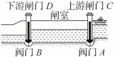 (1)如图所示,船闸由闸室和上、下游闸门以及上、下游阀门组成. 当闸室水面上升到和上游水面相平后,打开C,船从上游进入闸室;然后关闭上游的闸门和阀门,打开