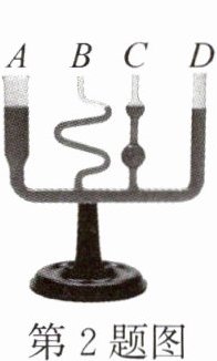 2. 如图所示的连通器,液体不流动时,A、B、C、D四个管内的液面相平. 下列做法中,液面静止时A管液面与其他管液面不相平的是(