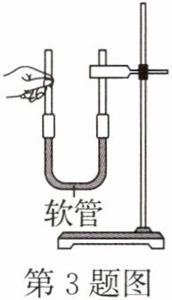 3. (教材P76素材改编)(2025·江苏盐城期末)如图,用软管连接两根玻璃管构成连通器. 向其中注入适量水,静止时两侧玻璃管中水面