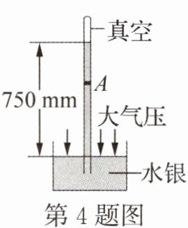 4. (2025·四川凉山)如图所示,该实验是托里拆利第一次测出大气压强值的实验,水银对玻璃管中 $A$ 点的压强