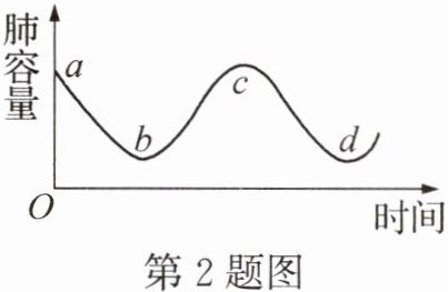 学科融合 如图是人体在平静呼吸时,肺内气体容量(肺容量)变化示意图,下列相关叙述中,正确的是 (