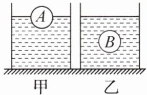 2. 完全相同的甲、乙两个圆柱形容器内分别装有水放在水平桌面上,将体积相同的 A、B 两实心球分别放入甲、乙两容器中,静止时如图所示,A 球漂浮、B 球悬浮,两容器中水面相平。下列说法正确的是(