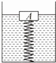 当弹簧长度为原长时,物体A受力平衡:$G_A=F_{\mathrm{浮}}$。