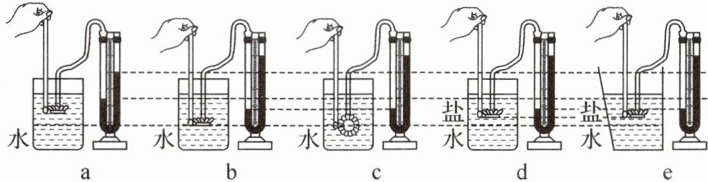 (4) 如图 b、c 所示, 保持探头在水中的深度不变, 改变探头的方向, 根据实验现象可以得出结论: