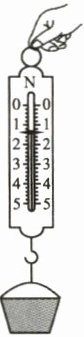 21. (2025·江苏无锡期中)小夏准备利用弹簧测力计制成一个简单实用的液体密度秤,如图,已知挂钩下的容器重$ G = 0.4N $,容积$ V = 100mL $,在容器中加满待测液体就可以直接“称”出该液体的密度($ g $取10N/kg)。则密度秤的“0”刻度应标在