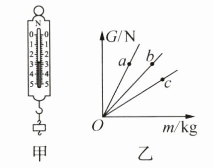 ② 正确测量后,小明将橘子的重力和质量值标在图乙的$ G - m $图像中,则画出的图像最有可能的是