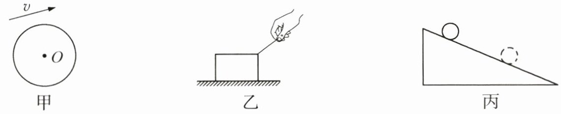 (3)如图丙,钢球从斜面上由静止滚下,请在图中虚线处画出此时钢球的受力示意图。