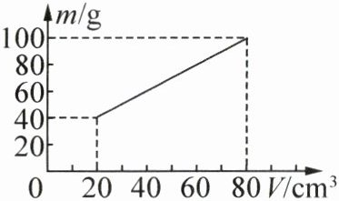 当$V=80\,\mathrm{cm}^3$时,液体质量$m=\rho V=1\,\mathrm{g/cm}^3×80\,\mathrm{cm}^3 = 80\,\mathrm{g}$。