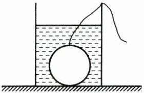 12. 水平桌面上的薄壁圆柱形容器中盛有某种液体,容器的底面积为80 $ cm^2 $,用细线拴着体积为100 $ cm^3 $的金属球沉入容器底,这时液体深度为10 cm,金属球对容器底的压力为1.9 N,如图。现将金属球从液体中取出,液体对容器底的压强改变了100 Pa,取出金属球时表面所沾液体与细线的体积均不计。下列判断正确的是(g取10 N/kg)(