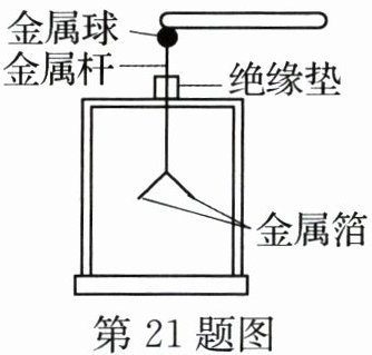 21. 如图所示是实验室的验电器,它的工作原理是同种电荷