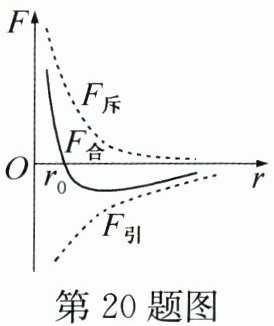20. 如图所示,图中的两条虚线分别是分子间斥力与引力随分子间距离变化的图像,以斥力为正值,以引力为负值,图中实线是分子间斥力与引力的合力随分子间距离变化的图像。由图像可知,将两个铅柱底面削平并紧紧地压在一起,再在它们下面吊一个重物且重物不掉落时,接触面处铅分子间的距离