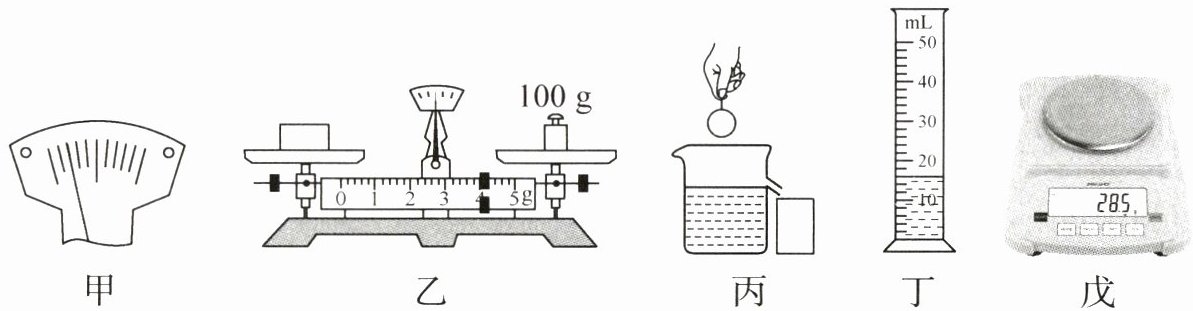 (4)小华想辨别妈妈的玉牌是不是和田玉石的。具体方法如下:① 将玉牌放在如图戊所示的电子秤上,得到数据为28.5g;② 用容器装适量水放在电子秤上,将数据清零;③ 将玉牌用细线拴住慢慢浸没水中,得到数据为9.5g。则他测得玉牌的密度是
