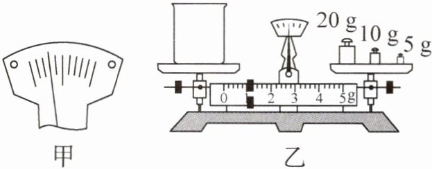 4. (2025·安徽亳州模拟·2分)上分点二 同样的现象,不同的操作.情境一:实验前,调节天平水平平衡过程中,天平指针偏转情况如图甲所示;情境二:在图乙的基础上量取20g水,天平水平平衡后,在右盘中再加入20g砝码,往左盘空烧杯内加入适量水后指针位置也如图甲所示.下列操作正确的是 (