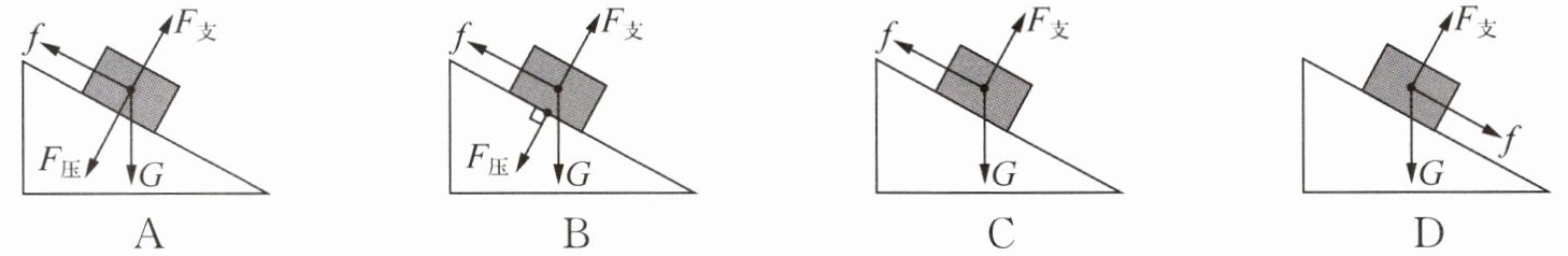 6. (2025·天津模拟·2分)下列图中,对放在斜面上静止的物体的受力分析正确的是 (