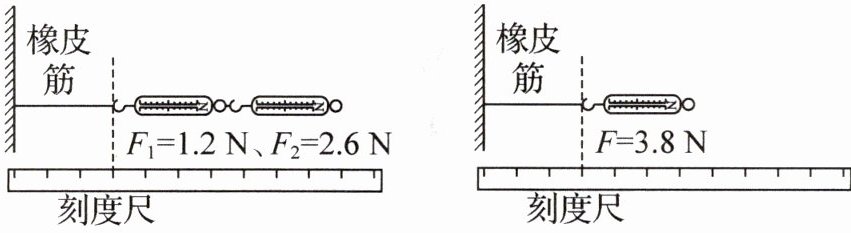 6. (2025·安徽期中·2 分)探究“同时作用在一个物体上、沿同一直线方向相同的两个力的合成”的实验过程中,部分情景如图,下列说法错误的是 (