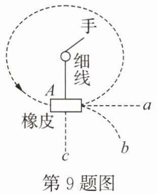 ;小明天天想象自己能到太空中去做实验,猜想如果小明到空间站去做此实验,则橡皮离开A点后的运动轨迹是
