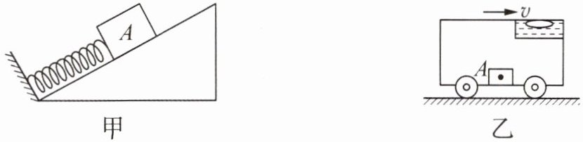 (2) (2025·陕西西安一模)在水平向右行驶的小车车厢顶端安置一个水平仪,小车水平地板上放置一物块A,从某时刻起,发现水平仪中的气泡向右摆动,如图乙所示,请画出此时物块A受力的示意图.