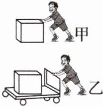 A.甲:水平用力推箱子,当箱子没有被推动时,推力小于摩擦力