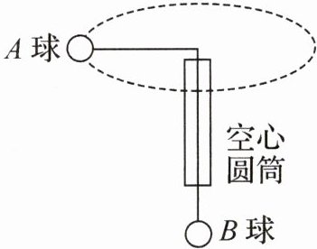 7.(3 分)如图所示,将一根绳子穿过内壁和端口光滑的空心圆筒,绳子上端系一个金属球$A$,下端与金属球$B$连接.转动空心圆筒,使金属球$A$匀速转动,此时金属球$A$