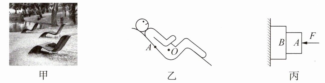 (1)(2025·广东深圳期末)图甲是深圳中心公园的网红弯弯椅,供游客躺躺平小憩.请在图乙中画出游客所受重力(重心$O$点已标出)和游客对躺椅$A$点压力的示意图.