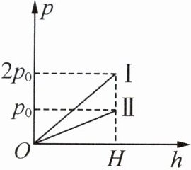 6. (2025·广东江门期末·2分)两个完全相同的圆柱形容器$ A $、$ B $置于水平桌面上,分别注入$ a $、$ b $两种液体,直到容器内液面达到相同的高度$ H $.液体$ a $、$ b $对容器底部的压强$ p $随液面高度$ h $变化的关系如图中图线Ⅰ、Ⅱ所示.现分别从$ A $、$ B $容器中取出适量液体,使液面下降相同高度$ \Delta h $,并将取出的液体全部放入对方容器内,液体对两容器底部的压强恰好相等.下列判断正确的是 (