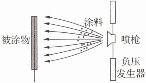 。如图所示,静电喷涂时,喷枪喷出带负电的涂料粒子,快速向带