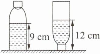 答案:$11. 1.2×10^{3} > < $解析:由图可知,倒立时水的深度为 12 cm,则倒立时水对瓶盖的压强$ p = \rho_{水}gh = 1.0×10^{3} kg/m^{3}×10 N/kg×12×10^{-2} m =$
