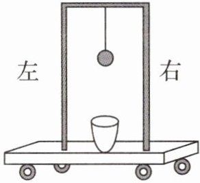 (选填“运动”或“静止”)的;某时刻将细线剪断,小车、小桶仍然以原速度向左做匀速直线运动,小球会落在