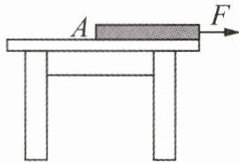 10. (2025·四川宜宾期中·2分)如图所示,一块质量分布均匀的木板A放在水平桌面上,木板A右端与桌边相齐。当在木板的右端施一水平向右的拉力F使木板A向右做匀速直线运动,木板A翻倒掉落前,A受到桌面的摩擦力