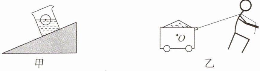 (1)如图甲,一小球漂浮在盛水的烧杯中,将烧杯放置在斜面上,各物体均处于静止状态,请作出小球的受力示意图和烧杯对斜面压力的示意图(小球的重心已标出)。