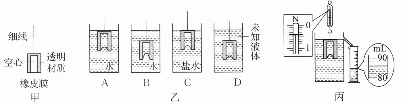 (4)小明利用图丙装置进行实验。($ \rho_水 = 1.0 × 10^3 kg/m^3 $,g取10N/kg)