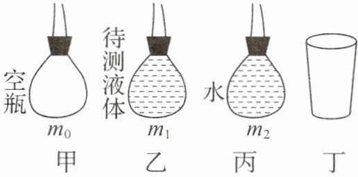 8. (2025·陕西西安期中·9分)为了准确测量液体的密度,当下各行业应用了比重瓶测量。使用方法:首先测出空比重瓶的质量$m_0$(如图甲),然后在比重瓶中装满待测液体测出比重瓶的总质量$m_1$(如图乙),根据比重瓶的容积即可求出待测液体的密度。
